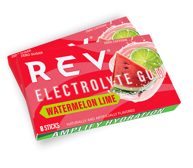 Nope! REV Electrolyte Gum is completely caffeine-free—just pure electrolyte replenishment to help keep you hydrated and performing at your best.