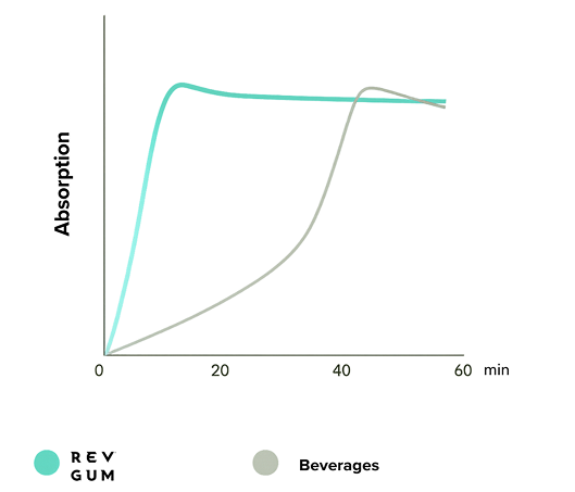 The caffeine is absorbed in the mouth by our natural salivation process. As soon as a piece of REV hits your tongue, the boost is already in motion!